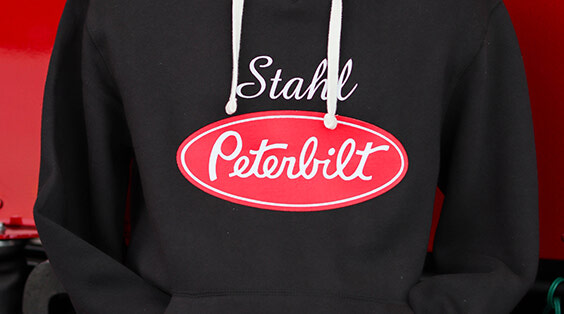 A stylish black pullover hoodie with double layer lined hood. Show off your Stahl Peterbilt pride. 80% Cotton / 20% polyester.